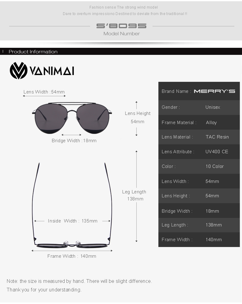Kính mát Nữ phong cách Hàn Quốc Merry S8095 chống UV400, chống chói, chống bức xạ